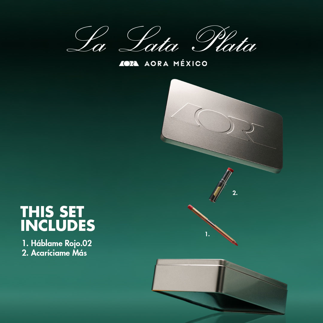 Inside the LATA PLATA, our limited-edition reusable tin, you’ll find the perfect red duo: Háblame Rojo.02, a creamy pencil for crisp, confident lines, and Acaríciame Más, our viral volumizing lip serum infused with five Mexican chiles for natural plumping and warmth.